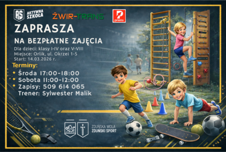 Zapraszamy dzieci z klas I–IV oraz V–VIII na aktywne zajęcia sportowo-rekreacyjne na Orliku przy ul. Okrzei 1–5.
