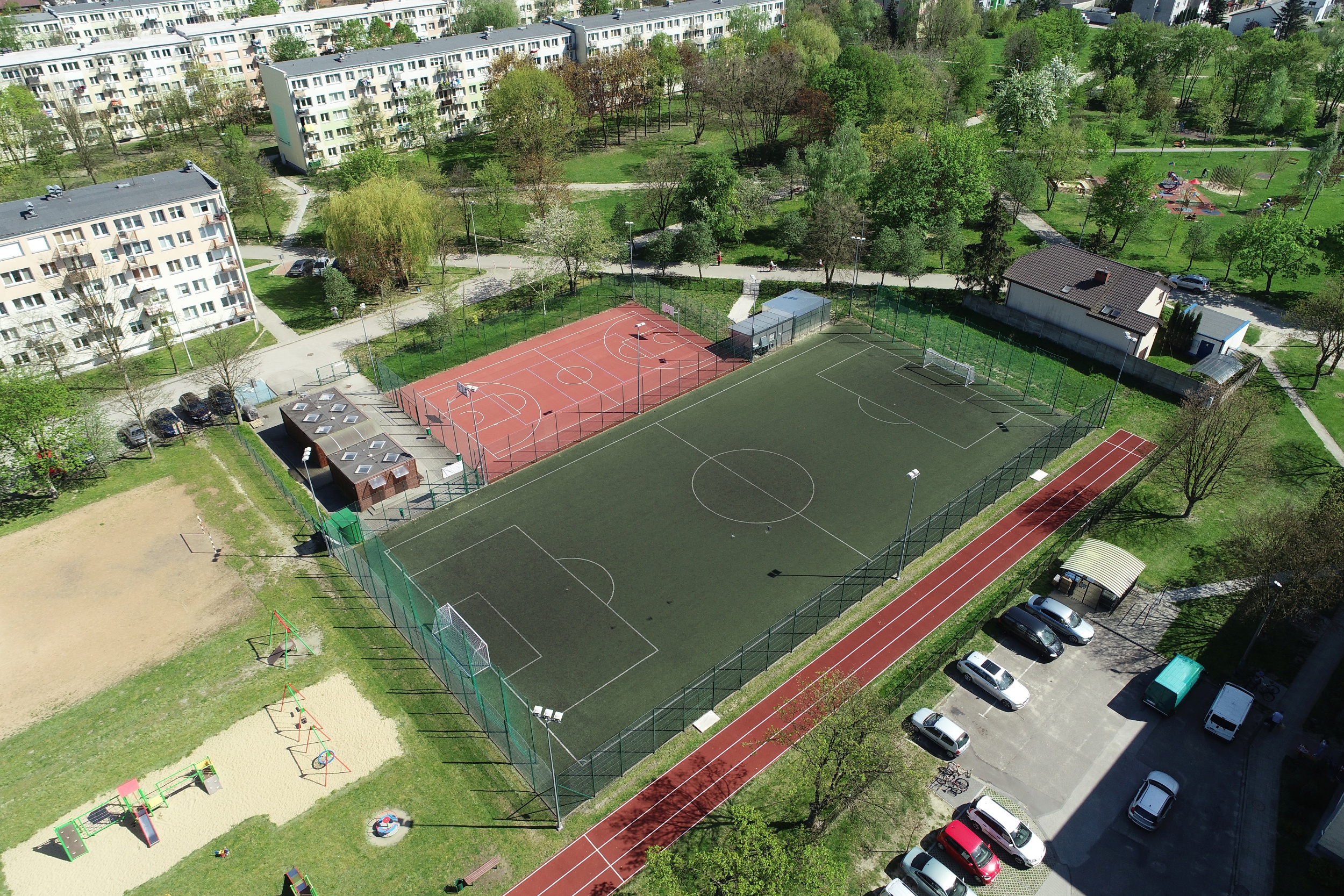 - Boisko wielofunkcyjne (do koszykówki, siatkówki oraz tenisa ziemnego).